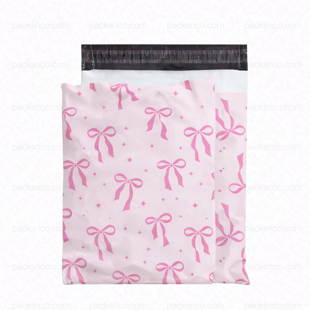Pink Ribbon thank you plastic gift bag with bow design. Perfect for boutiques, gifts, events, and small business packaging.