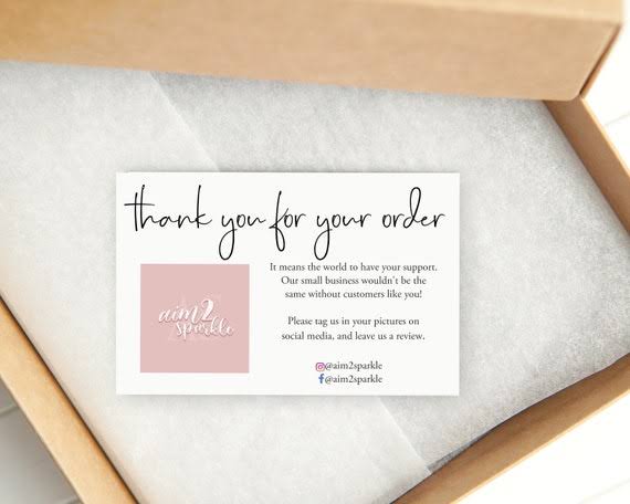 Premium thank you cards designed to add a personal, professional touch to your packaging. Perfect for order inserts, gift boxes, and brand appreciation. This has a plain side for personalized notes.