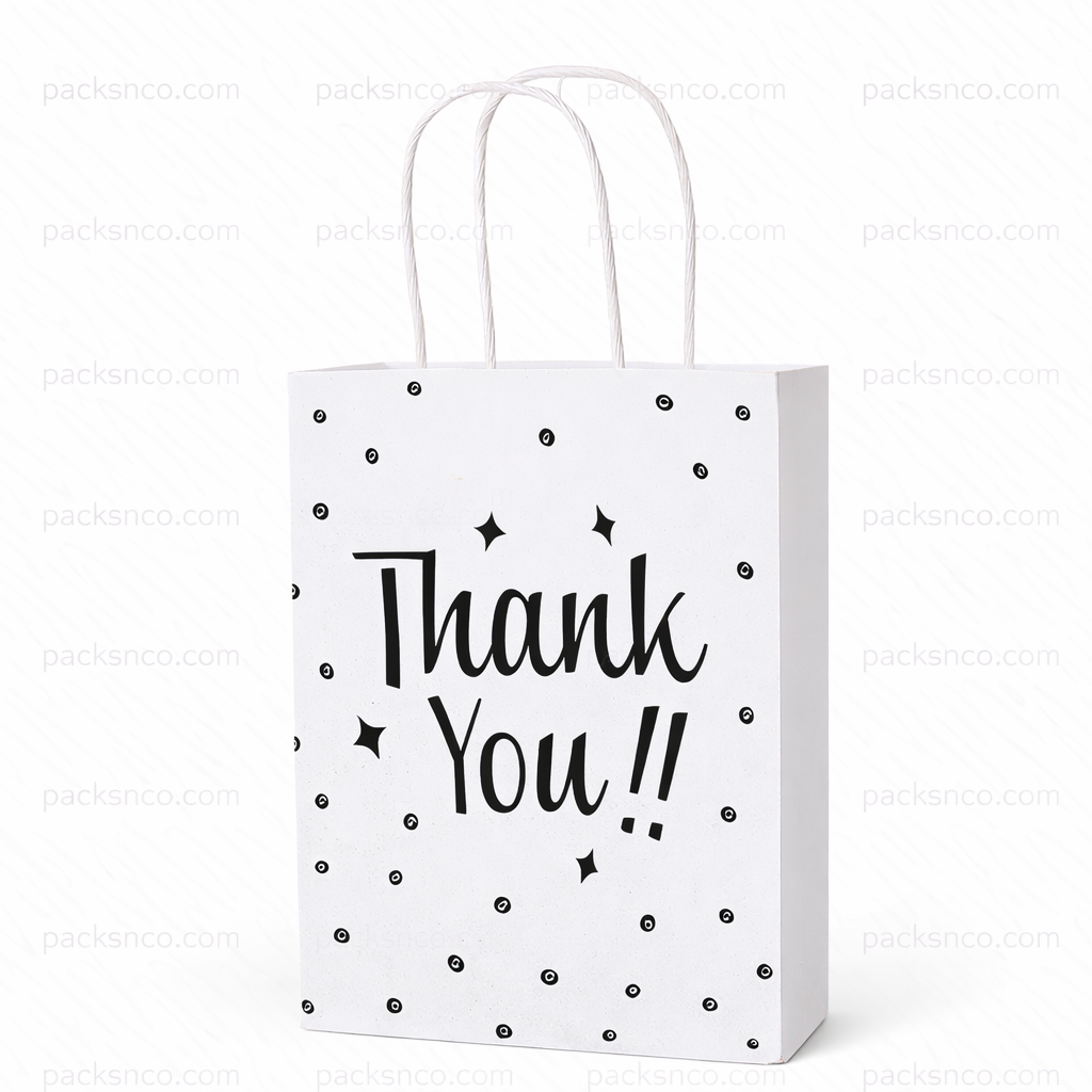 Printed paper gift bag with sturdy twisted handles. Durable, lightweight, and ideal for retail packaging, gifting, events, and everyday use. Suitable for boutiques, beauty brands, and small businesses.